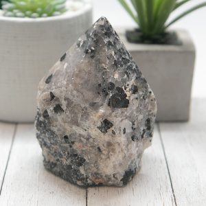 Black Tourmaline in Quartz Rough Point 658g 3.1×3.7in