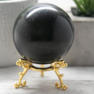 This stunning Black Tourmaline Quartz sphere is a uniquely powerful natural crystal. This sphere is the perfect size to hold during meditation or to display in your home or office.