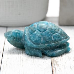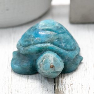This beautiful blue apatite turtle carving is the perfect addition to any home or collection. The intricate details of the turtle’s shell and features have been expertly carved from high-quality blue apatite, a rare and sought-after gemstone known for its bright, vibrant blue color. This little turtle is the perfect size to display on a shelf or desk. The calming energy of the blue apatite promotes inner peace and tranquility, making this carving a wonderful gift for anyone needing a little extra calm. Add whimsy and serenity to your home with this adorable blue apatite turtle carving.