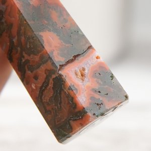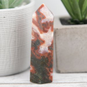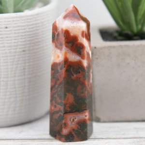 Crafted with meticulous attention to detail, this tower showcases the rich and deep red tones of carnelian interwoven with the intricate moss-like patterns of red moss agate. The fusion of these two crystals creates a harmonious blend of energies, combining the fiery passion and vitality of Carnelian with the grounding and nurturing qualities of moss agate.