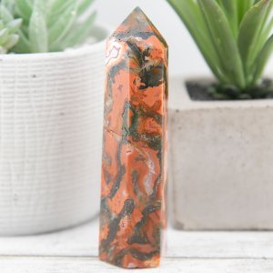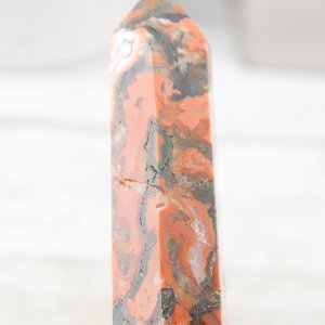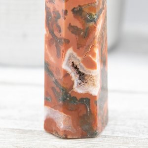 Crafted with meticulous attention to detail, this tower showcases the rich and deep red tones of carnelian interwoven with the intricate moss-like patterns of red moss agate. The fusion of these two crystals creates a harmonious blend of energies, combining the fiery passion and vitality of Carnelian with the grounding and nurturing qualities of moss agate.
