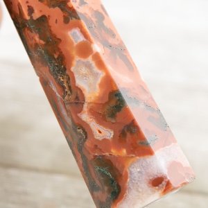 This Carnelian Moss Agate Tower is a captivating blend of vibrant red agate and beautiful patterns of red moss agate. This stunning crystal tower combines the fiery energy of carnelian with the earthy allure of moss agate, resulting in a unique and captivating piece that will delight crystal enthusiasts and collectors alike.