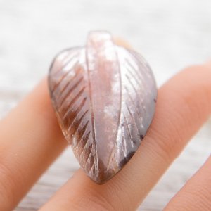 This beautiful gem lepidolite leaf carving is made from a natural rough specimen of lepidolite mineral. This high-quality crystal is known for its calming energy and ability to reduce stress and anxiety. The unique rough texture of the stone adds character and authenticity to the piece, making it a one-of-a-kind addition to any collection. Perfect for crystal healers and collectors alike, this lepidolite tumbled stone is a must-have for anyone looking to bring natural, calming energy into their day.