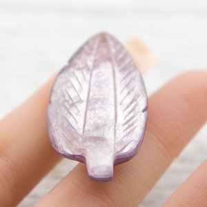 This beautiful gem lepidolite leaf carving is made from a natural rough specimen of lepidolite mineral. This high-quality crystal is known for its calming energy and ability to reduce stress and anxiety. The unique rough texture of the stone adds character and authenticity to the piece, making it a one-of-a-kind addition to any collection. Perfect for crystal healers and collectors alike, this lepidolite tumbled stone is a must-have for anyone looking to bring natural, calming energy into their day.
