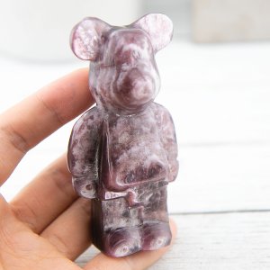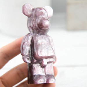 Whether displayed as a decorative piece, used as a meditation aid, or gifted to a loved one, the Gem Lepidolite Bearbrick Carving radiates a calming energy that creates a serene atmosphere in any space. Its adorable Bearbrick design adds a touch of whimsy and charm, making it a delightful addition to any crystal collection.