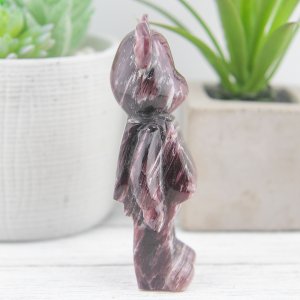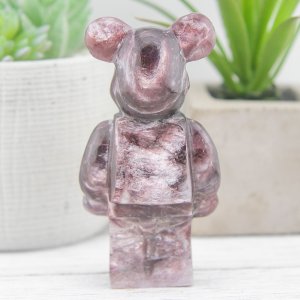 Hand-carved with meticulous attention to detail, each Gem Lepidolite Bearbrick Carving is a testament to the Earth’s artistry. The rich purple hues and shimmering mica flecks of Lepidolite create a mesmerizing display that captures the eye and enchants the senses. This carving effortlessly combines the gentle energy of Lepidolite with the charming and iconic Bearbrick design.