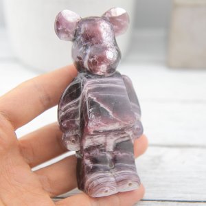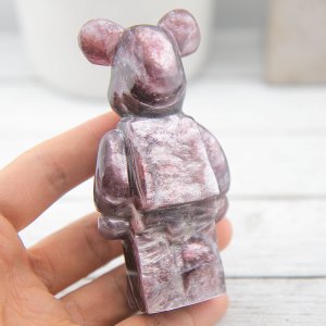 Whether displayed as a decorative piece, used as a meditation aid, or gifted to a loved one, the Gem Lepidolite Bearbrick Carving radiates a calming energy that creates a serene atmosphere in any space. Its adorable Bearbrick design adds a touch of whimsy and charm, making it a delightful addition to any crystal collection.