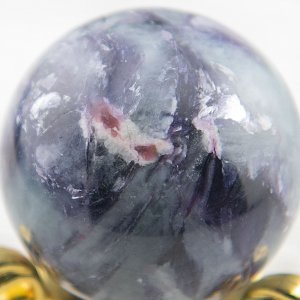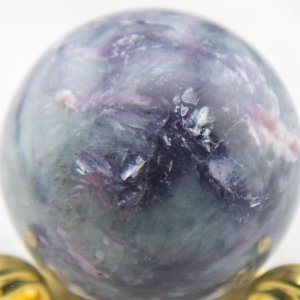 This mineral combination is said to enhance Lepidolite’s calming and soothing properties while amplifying the Quartz’s energy. The sphere is polished to a smooth finish, showcasing this mineral’s unique patterns and variations.