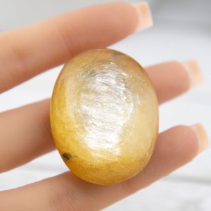Whether used during meditation, energy healing, or held in your hand for its comforting presence, the Golden Mica Palmstone radiates warm and inviting energy. Its smooth and polished surface is perfect for soothing touch and relaxation, allowing you to experience the transformative qualities of this unique crystal.