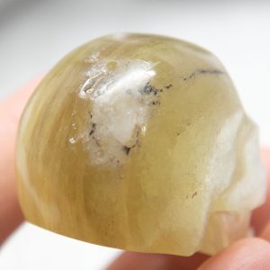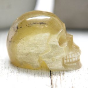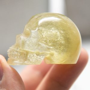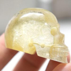 This golden mica skull carving is the perfect addition to any collection or display. Its intricate details and unique, shimmering appearance make it an exceptional and one-of-a-kind piece. It would also make a thoughtful and meaningful gift for any crystal enthusiast or lover of unique and unusual items.