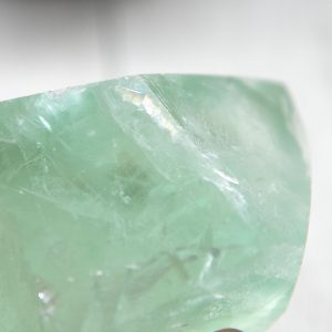 This rough green fluorite freeform is a natural and untreated specimen, showcasing the crystal’s stunning colors and unique patterns. The green fluorite shimmers in the light, revealing purple, blue, and yellow hints.