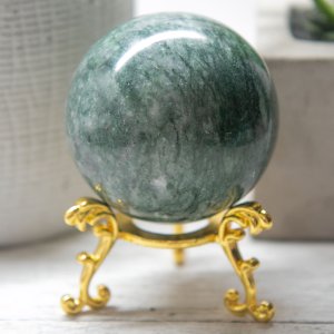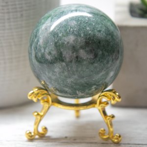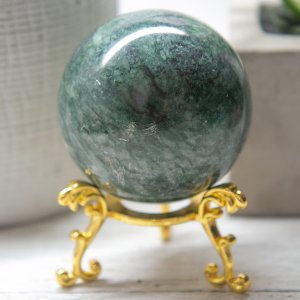 Holding the Green Jade Sphere in your hands will give you a sense of grounding and connection to the Earth. Its gentle yet powerful energy envelops you, encouraging personal growth, self-discovery, and spiritual enlightenment. The Green Jade Sphere is a reminder to live in harmony with nature and to nurture the seeds of your dreams and aspirations.