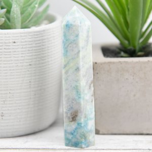This Hackmanite Point Tower is a natural specimen mined from the earth, making it a unique and authentic piece. It is an excellent addition to any collection of crystals and minerals and is perfect for anyone who loves natural beauty. This tower is also a wonderful gift for anyone interested in healing crystals and minerals, as hackmanite is believed to have specific properties that can help promote balance and harmony.
