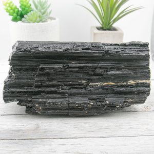 Black tourmaline is believed to have a strong grounding and protective properties, making it a popular choice for those seeking to release negativity and increase feelings of stability and security. This large black tourmaline log is a treasured addition to any crystal collection.