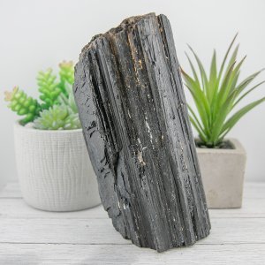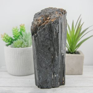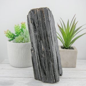 Black tourmaline is believed to have a strong grounding and protective properties, making it a popular choice for those seeking to release negativity and increase feelings of stability and security. This large black tourmaline log is a treasured addition to any crystal collection.