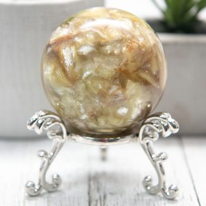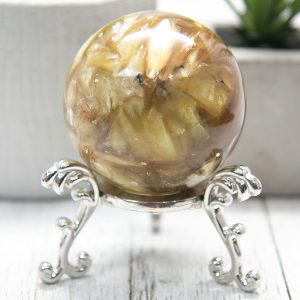 This sphere has been polished to a high shine, highlighting this mineral’s unique formations and natural beauty. So why wait? Add this high-quality Golden Mica sphere to your collection today!