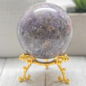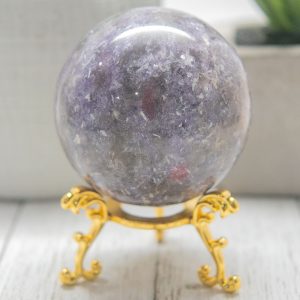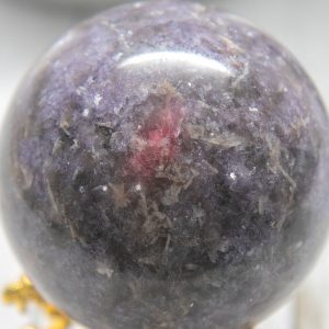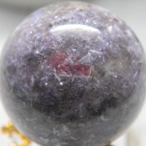 This rare and beautiful Unicorn Stone Sphere is a stunning and unique crystal specimen from Madagascar. This high-quality piece is made from natural Lepidolite, Pink Tourmaline, Smokey Quartz, and Clevelandite, all found in the same pegmatite.