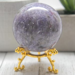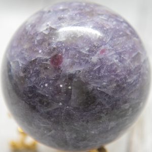 This rare and beautiful Unicorn Stone Sphere is a stunning and unique crystal specimen from Madagascar. This high-quality piece is made from natural Lepidolite, Pink Tourmaline, Smokey Quartz, and Clevelandite, all found in the same pegmatite.