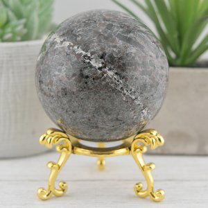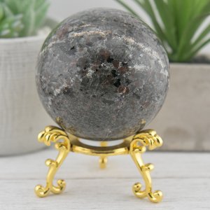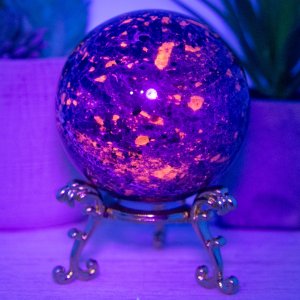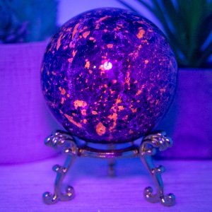 The Yooperlite sphere is made from natural emberlite that has been hand-selected for its high quality and beauty. This gemstone is UV reactive, which glows under blacklight, adding extra excitement to this piece.