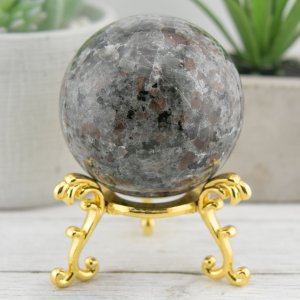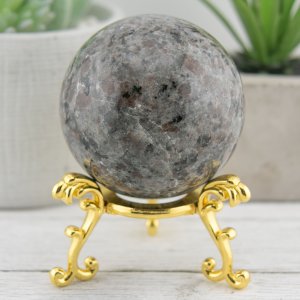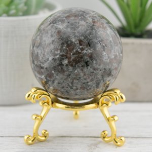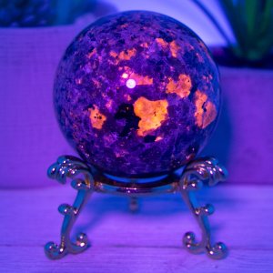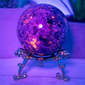 The Yooperlite sphere is made from natural emberlite that has been hand-selected for its high quality and beauty. This gemstone is UV reactive, which glows under blacklight, adding extra excitement to this piece.