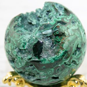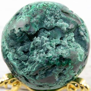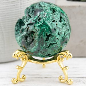 This Congo Malachite sphere is known for its fibrous, botryoidal structures; the crystal structure is unique and eye-catching. Malachite is said to be a powerful stone of transformation; it’s believed to help with change and emotional balance while also providing protection. This sphere is perfect for display on any bookshelf, windowsill, or desk. It’s considered a high-quality crystal specimen that would make an excellent addition to any collection of crystals and stones. It would also be a great gift for a loved one or yourself.