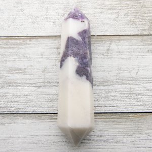 This extraordinary Morado Purple Opal Double Terminated is a rare and exquisite gemstone specimen sourced from Mexico. This captivating DT showcases the enchanting beauty of Grape Opal Royale, also known as Tiffany Stone or Bertrandite, which is a unique form of opalized fluorite.