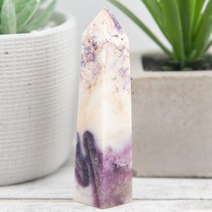 Whether displayed as a centerpiece in your sacred space, used in meditation and energy healing practices, or cherished as a unique addition to your crystal collection, the Morado Purple Opal Tower is sure to leave a lasting impression. Its combination of rare grape opal royale, opalized fluorite, and vibrant purple hues makes it a true treasure among crystals.