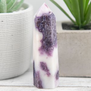 Whether displayed as a centerpiece in your sacred space, used in meditation and energy healing practices, or cherished as a unique addition to your crystal collection, the Morado Purple Opal Tower is sure to leave a lasting impression. Its combination of rare grape opal royale, opalized fluorite, and vibrant purple hues makes it a true treasure among crystals.