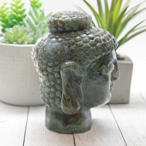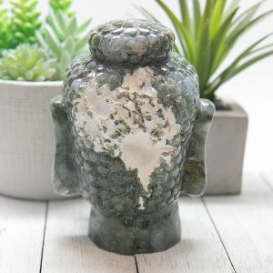 Moss Agate Buddha Head 1122g 3.5×4.8in