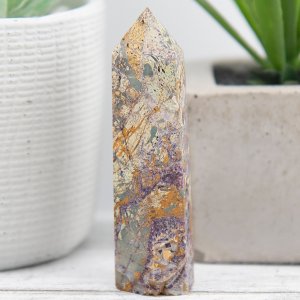 The Purple Brecciated Jasper Tower is more than just a decorative piece; it is a healing and energy work tool. Its pointed shape allows for focused energy flow, making it ideal for directing intentions and manifesting goals. Whether used during meditation, energy healing sessions, or as a striking addition to your crystal grid, this tower amplifies your preferences and supports your spiritual journey.