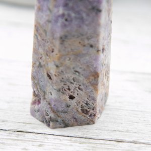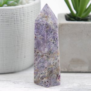 The tower stands approximately three inches tall, making it a perfect size for display on your desk, nightstand, or sacred space. Its smooth, polished surface feels lovely, allowing you to appreciate its beauty and metaphysical properties.