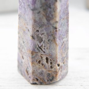 Each tower is one-of-a-kind and hand-selected for its exceptional quality and beauty. Each stone’s unique patterns and colors create a breathtaking, mesmerizing effect. Whether you’re looking to add to your crystal collection, seeking spiritual guidance, or are drawn to its beauty, the Purple Sphalerite Tower will surely be a treasured addition.