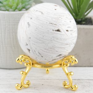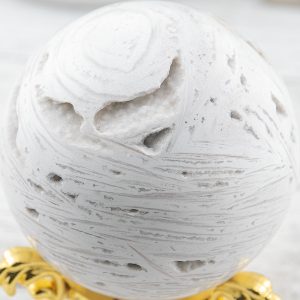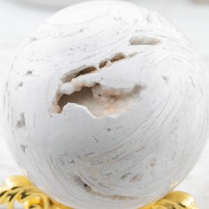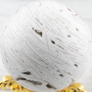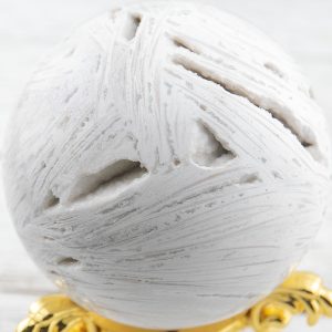 This White Crazy Lace Agate Sphere is a natural crystal that will catch your eye. Its unique patterning resembles snowflakes, making it a perfect addition to any winter-themed collection. This sphere contains sugar druzy’s, which means it has a sparkling sugar-like coating on the surface of the agate. It is a perfect piece for any crystal enthusiast or collector.