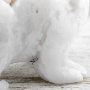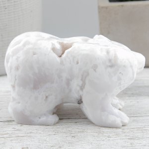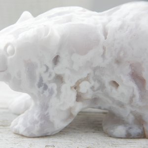 This White Agate Bear is truly a unique and charming piece of natural crystal. This beautiful bear is hand-crafted from white druzy agate, also known as white plume agate or chalcedony.
