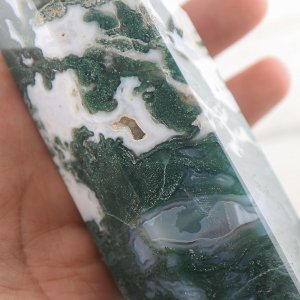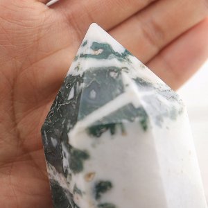 • Grounding and Harmonizing Properties: Known for its grounding and stabilizing properties, Moss Agate is believed to promote emotional balance, tranquility, and a deep connection to nature. The druzy formations further amplify the stone’s energies, making this tower a powerful tool for enhancing your environment.