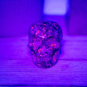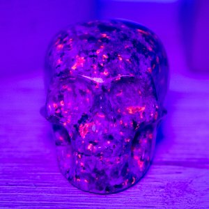 This Yooperlite Skull Carving is a perfect addition to any rock collector’s collection! This natural emberlite carving is high quality and UV reactive, making it a unique and visually stunning addition to any display.
